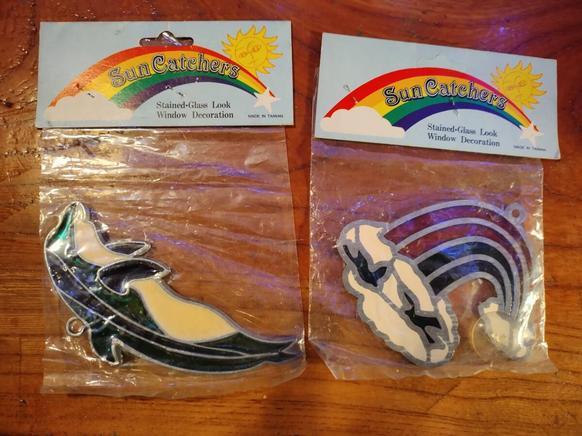 > ステンドグラス★ウインドウデコレーション、イルカ、二枚セット、インテリア、アンティーク、