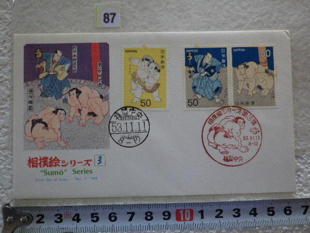 - FDC 相撲絵 第3集 3貼2消 福岡中央印 解説書有●87●同梱大歓迎