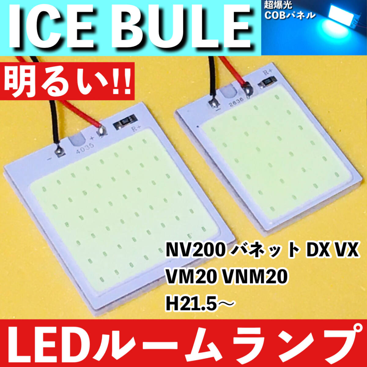 - NV200 バネット DX VX VM20 VNM20 [H21.5~] アイスブルー LED ルームランプ 超爆光 COBパネル 全面発光 水色 ライト パーツ アクセサリ