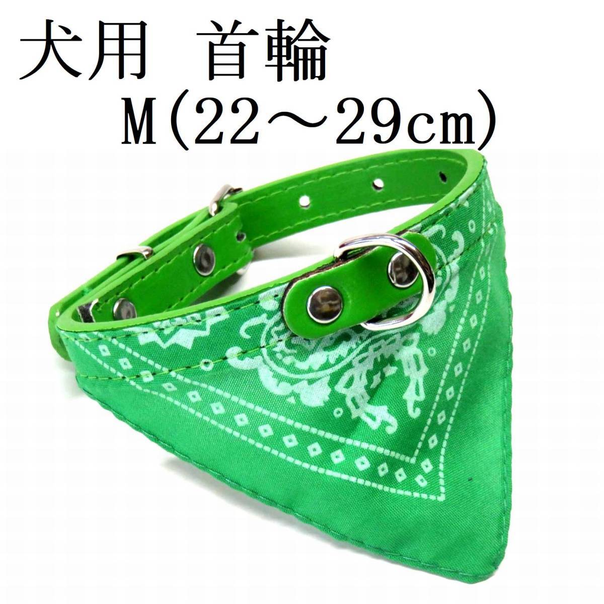 - 首輪 バンダナ付き M 緑 首回22~29㎝前後 幅1.5cm 犬 猫 小型犬 子犬 グリーン スカーフ PUレザー 室内 ペット用品 散歩 新品 送料無料