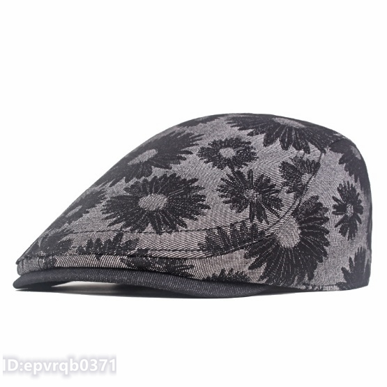 - ハンチング◇新入荷 キャスケット メンズキャップ 菊柄 紳士 帽子 ゴルフキャップ 日よけ フリーサイズ /黒