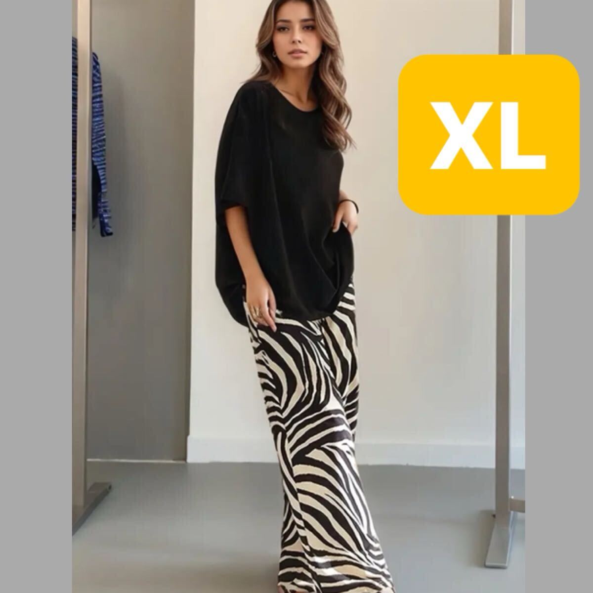 - セットアップ レディース パジャマ カジュアル 半袖 ロングパンツ セット ゼブラ プリント 高級 ホームウェア ツーピース セット