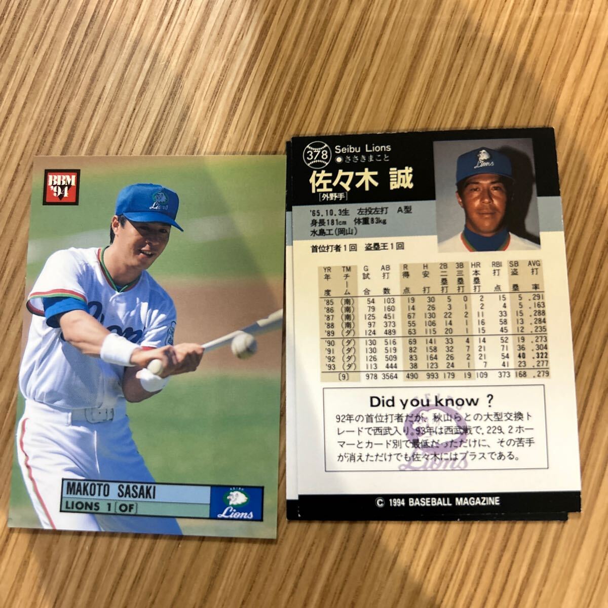 - 1994BBM 378 佐々木誠 西武ライオンズ