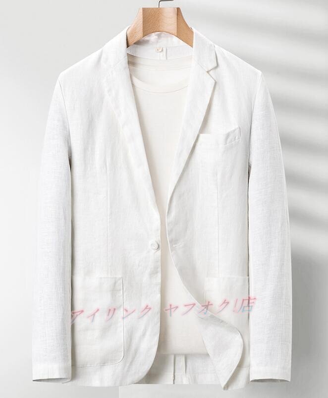> ☆新品リネン テーラードジャケット 最高級 麻100% メンズ ブレザー 薄手スーツ 紳士服 センターベンツ 春夏アウター 白