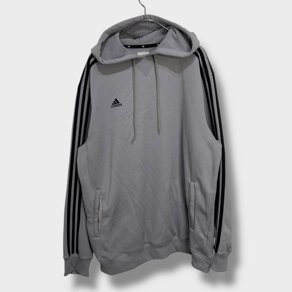 - 送料無料☆adidas☆アディダス☆スウェットパーカー☆パフォーマンスロゴ☆スリーストライプ☆グレー☆XL☆E25M