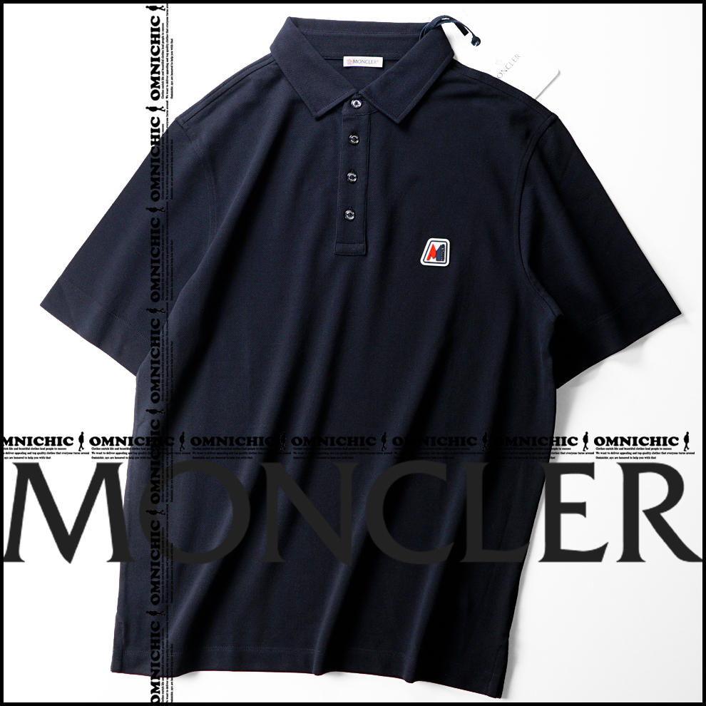 > 希少ラバースクエアロゴ■新品/国内正規品【MONCLER】モンクレール一味違うデザイン性/清潔感溢れるネイビー鹿の子ポロシャツM/紺/半袖