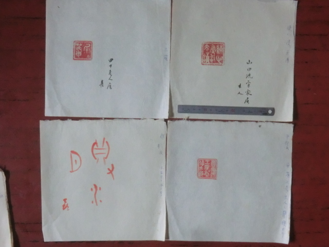 - 広瀬栄一コレクション印譜●昭和45年 長曾我部木人の印譜 4枚 練心浸太清 山田流宗家など 250508 古文書