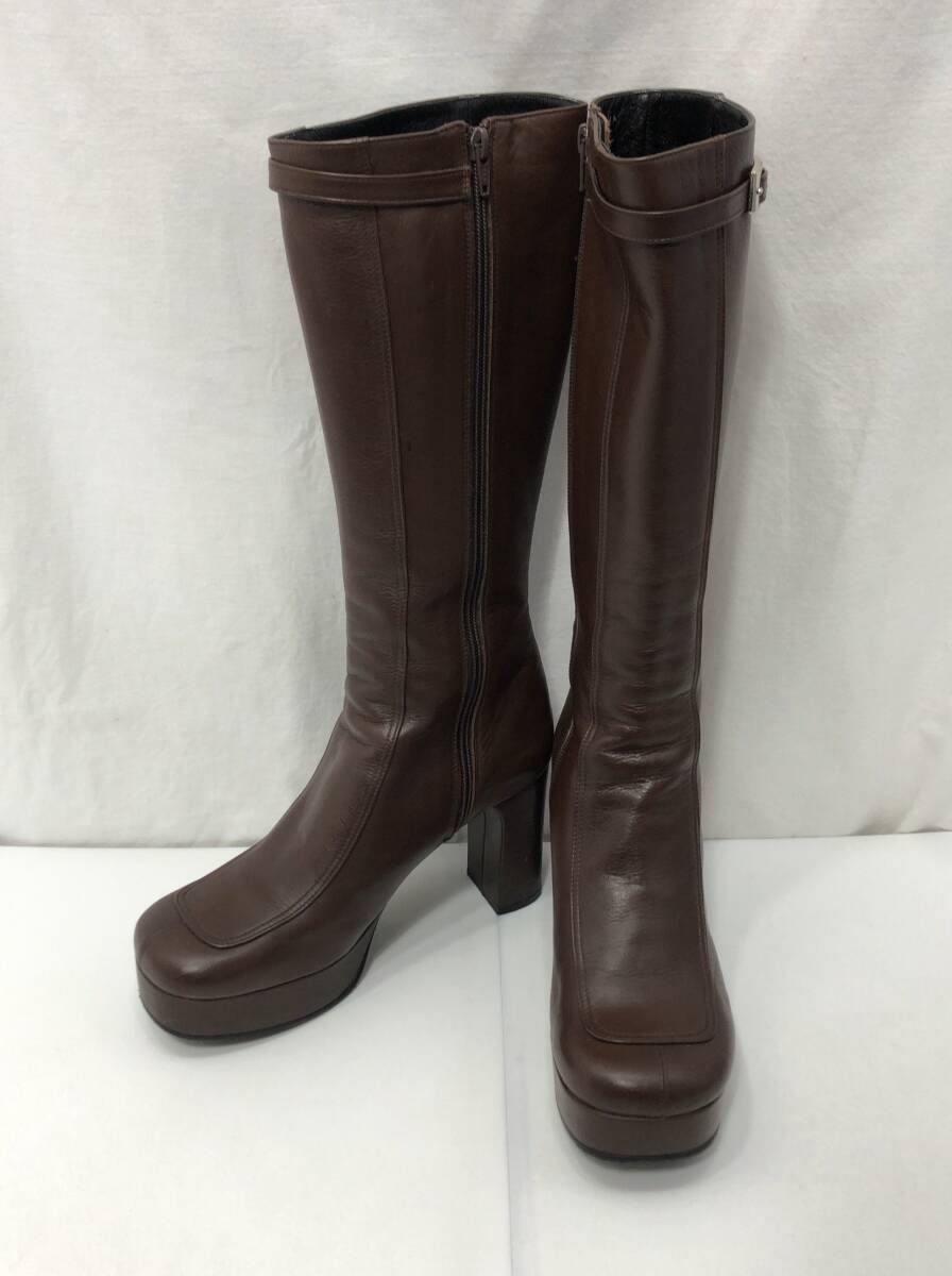 - cava cava サヴァサヴァ レザー ロング ブーツ 24.5cm ブラウン スクエアトゥ レディース K