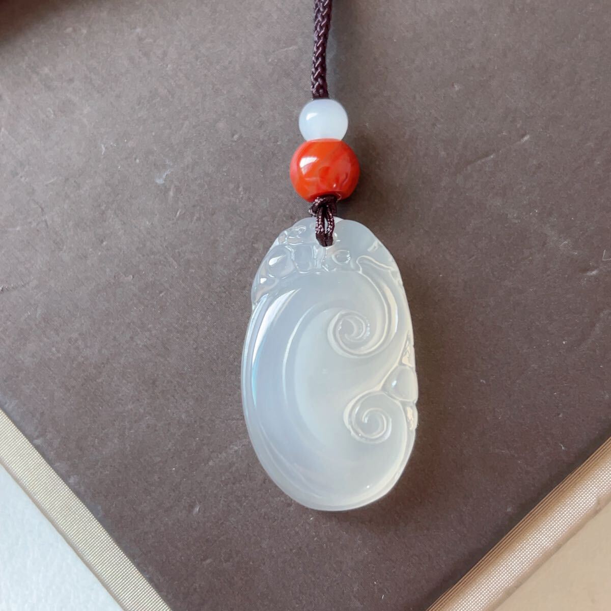 - ◇白瑪瑙◇メノウ◇アゲート◇ネックレス◇ペンダント◇如意 彫刻◇天然石◇パワーストーン◇プレゼントにも 030P584