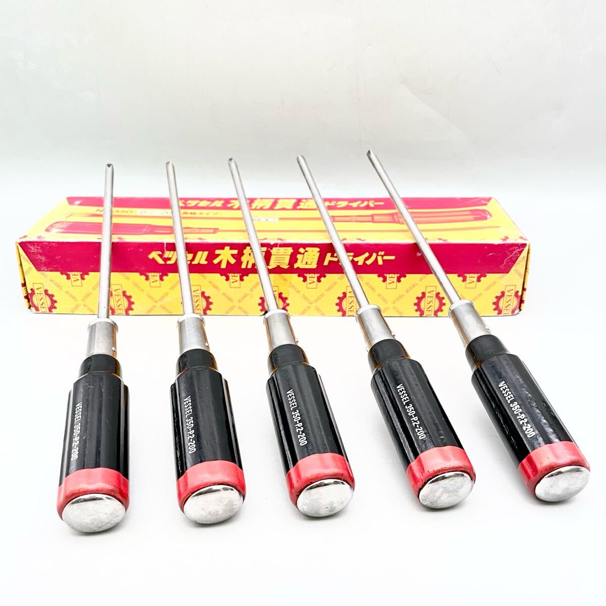 > [新品 未使用品] VESSEL ベッセル No.350 木柄 貫通 ドライバー 5本 長軸 プラス +2 200mm 工具 ハンドツール まとめ売り【値下げなし】