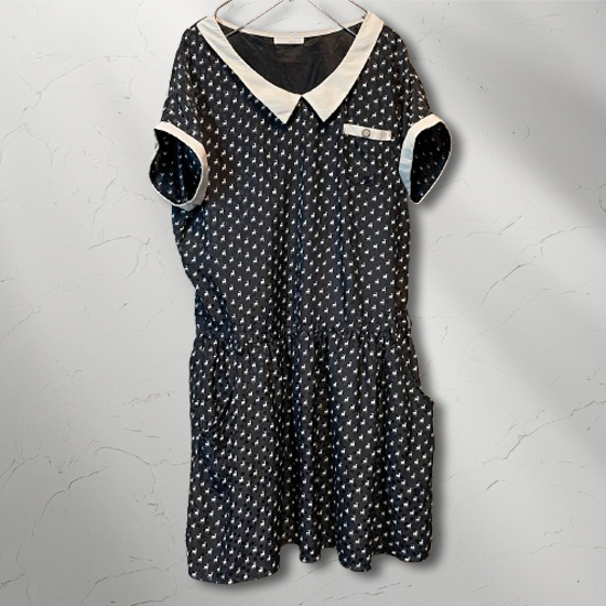 - OPAQUE.CLIP オペーク かわいい衿 ドット+シカ柄プリント 半袖ワンピース Mサイズ