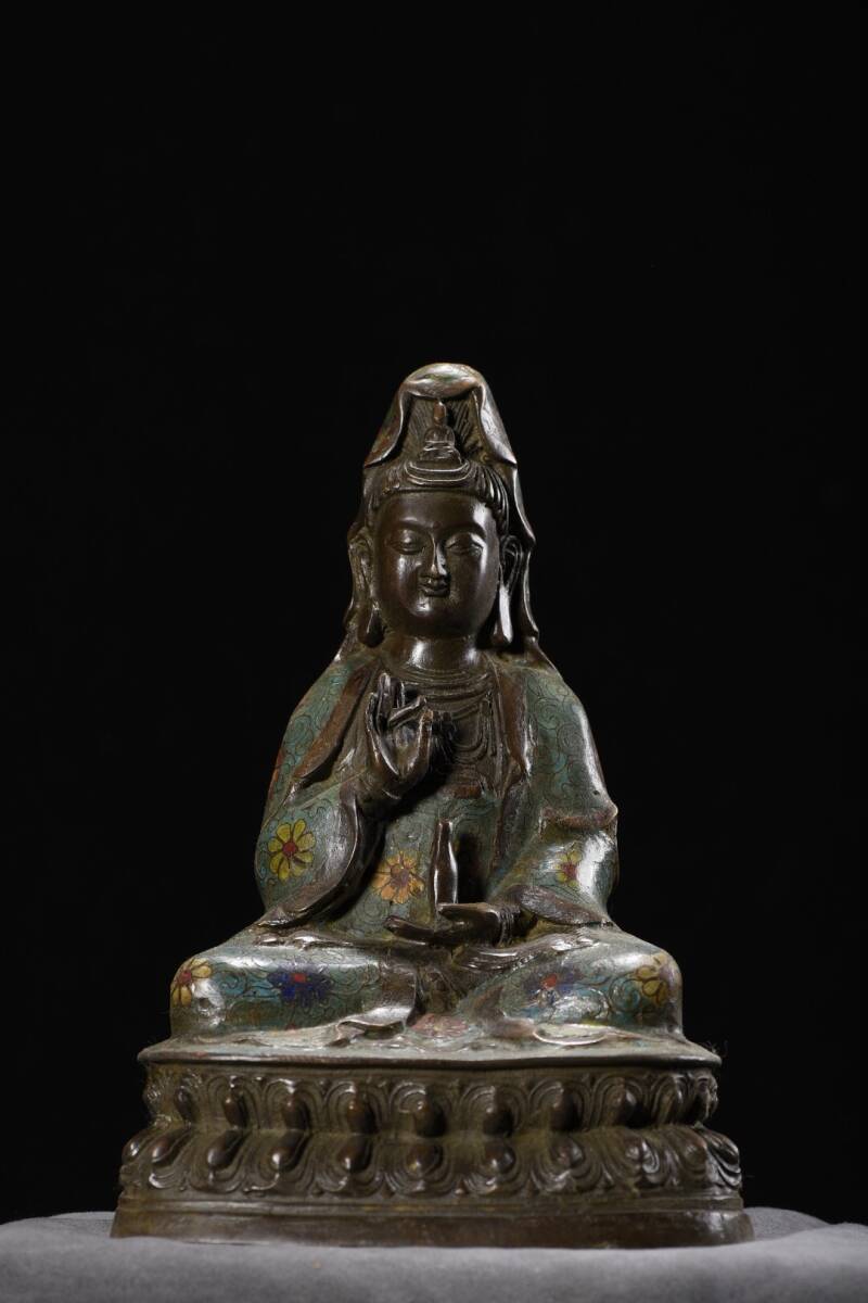 - 蔵友旧蔵出 紫銅製 景泰藍 琺瑯彩 纏枝蓮 觀音菩薩像 密宗密教 供養品 仏教美術品 中国時代美術品