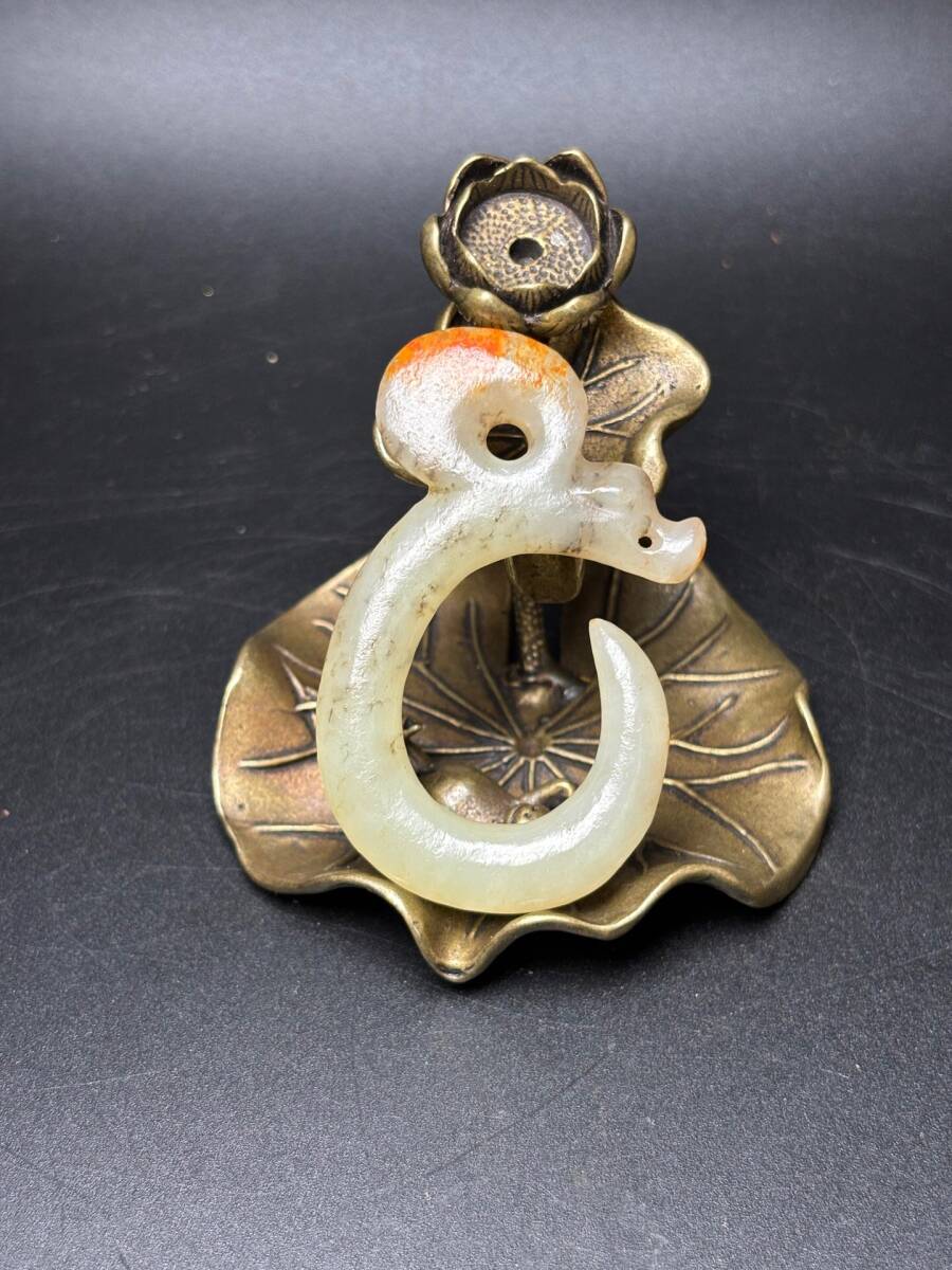 - ▽鴻▽ 和田玉製 細密彫 豬龍 置物 賞物 古賞物 中国古玩 中国古美術
