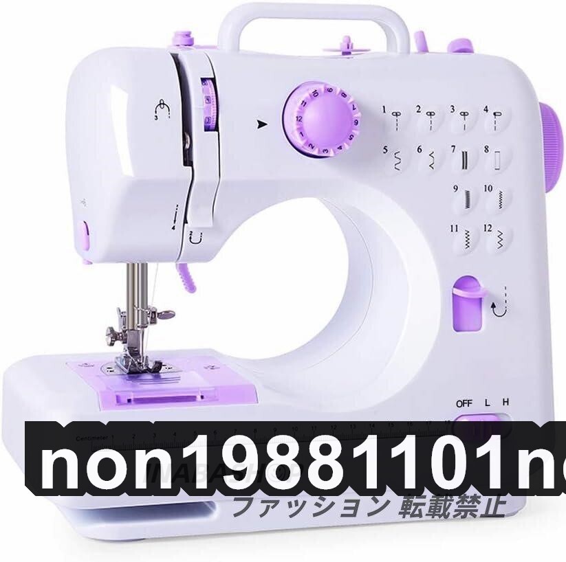 - 電動ミシン 家庭用ミシン 小型ミシン ライト付き 12種類の縫い目 返し縫い 2段階スピード ダブルスレッド 引き出し付き コンパクト 初心者