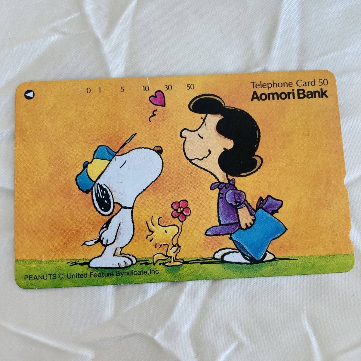> SK テレカ スヌーピー 未使用 テレホンカード 50度数 SNOOPY 青森銀行 Aomori Bank オレンジ ルーシー ウッドストック