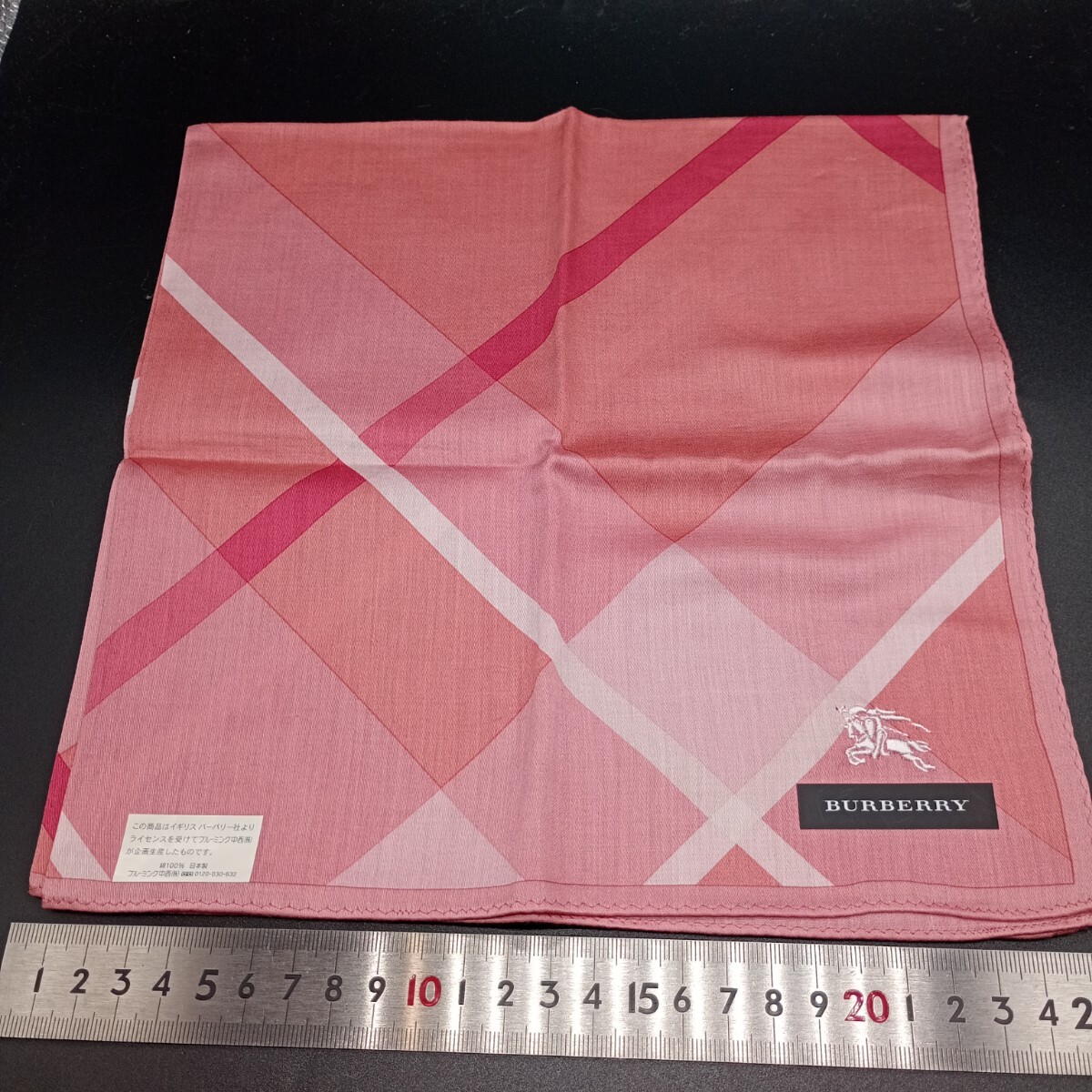 - BURBERRY バーバリー ハンカチ ピンク チェック ホワイトホースマーク刺繍 no.3017