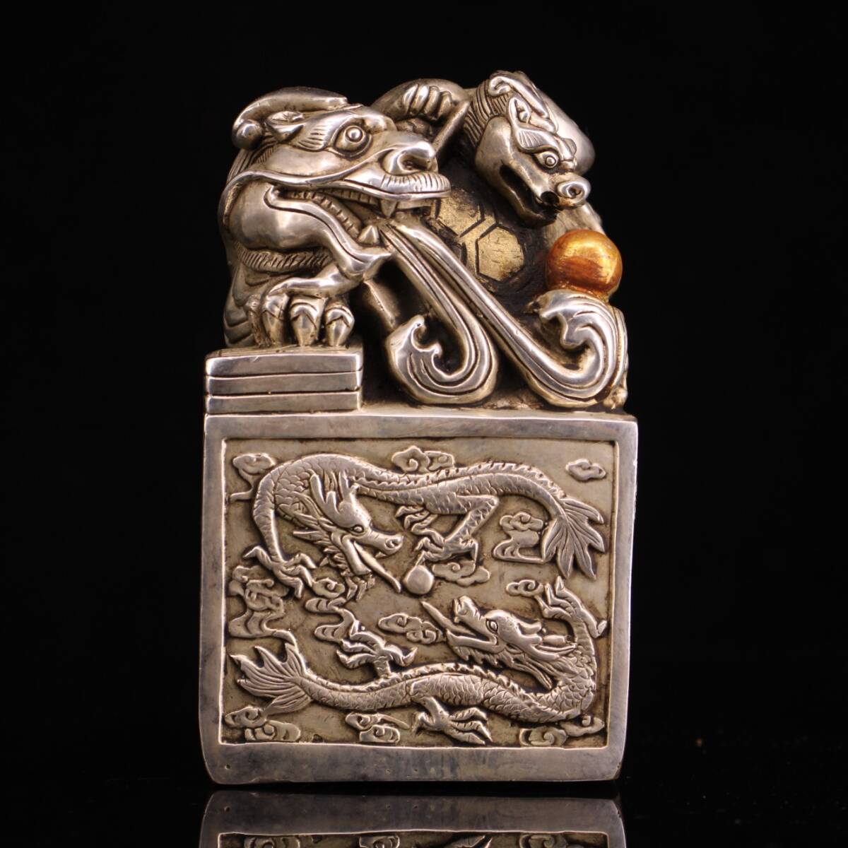 - 蔵友旧蔵出 銅製 塗金 銀鍍 龍龜印章 置物 古賞物 中国古玩 中国古美術