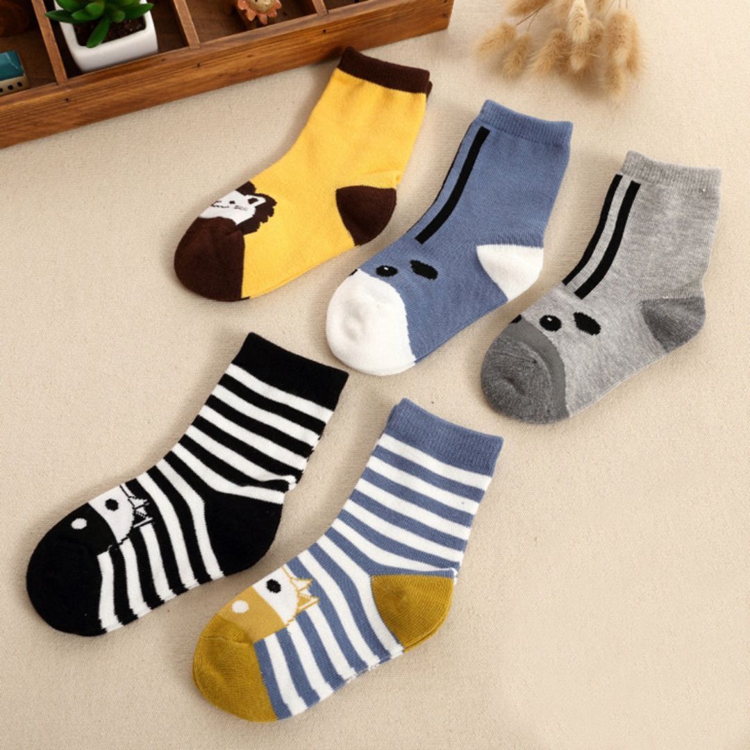 - 新品 男の子 動物柄ソックス 13~15cm 5足セット クルー丈 ふくらはぎ丈 5柄