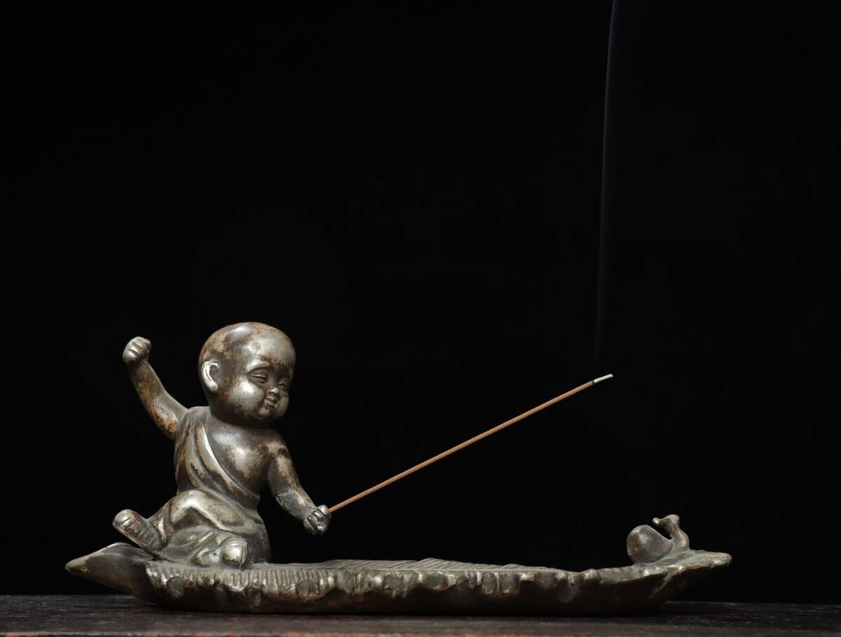 - 蔵友旧蔵出 銅製 銀鍍 童子香插 置物 古賞物 中国古玩 中国古美術