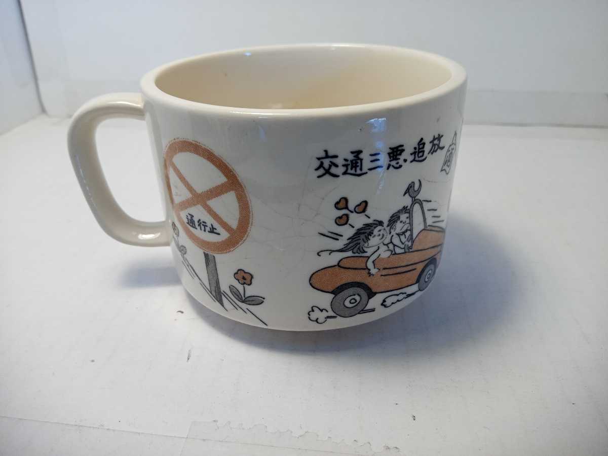 - 交通三悪追放 警察ノベルティ? マグカップ 昭和レトロ 面白イラスト はずしオシャレ