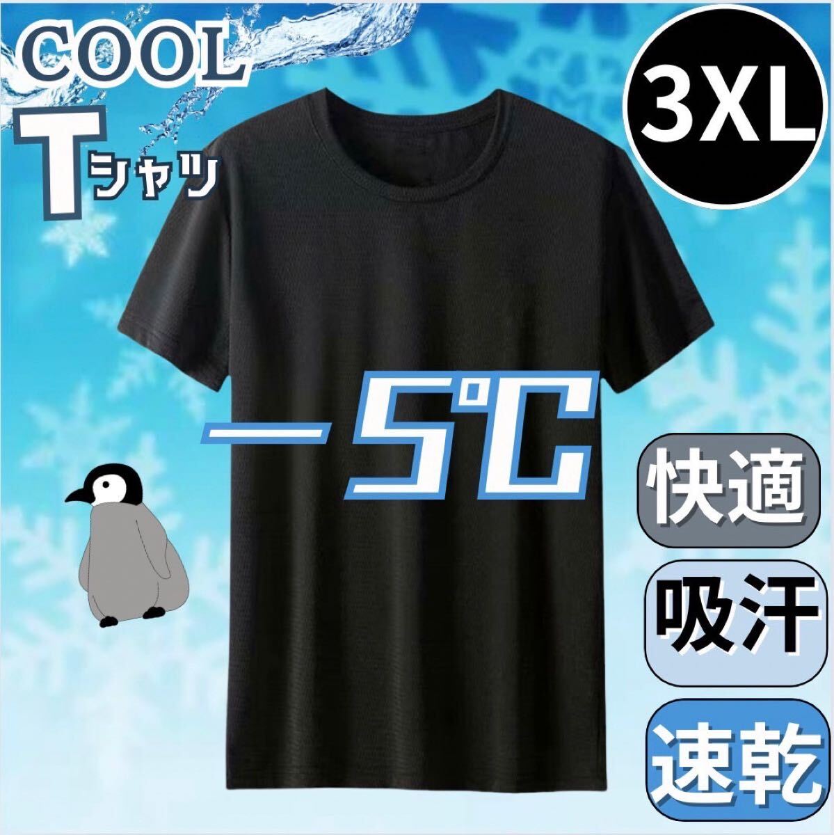 > 接触冷感Tシャツ 3XL 黒 ブラック 無地 半袖 丸首 メンズ トップス カットソー スポーツウェア 吸汗速乾 快適 熱中症対策