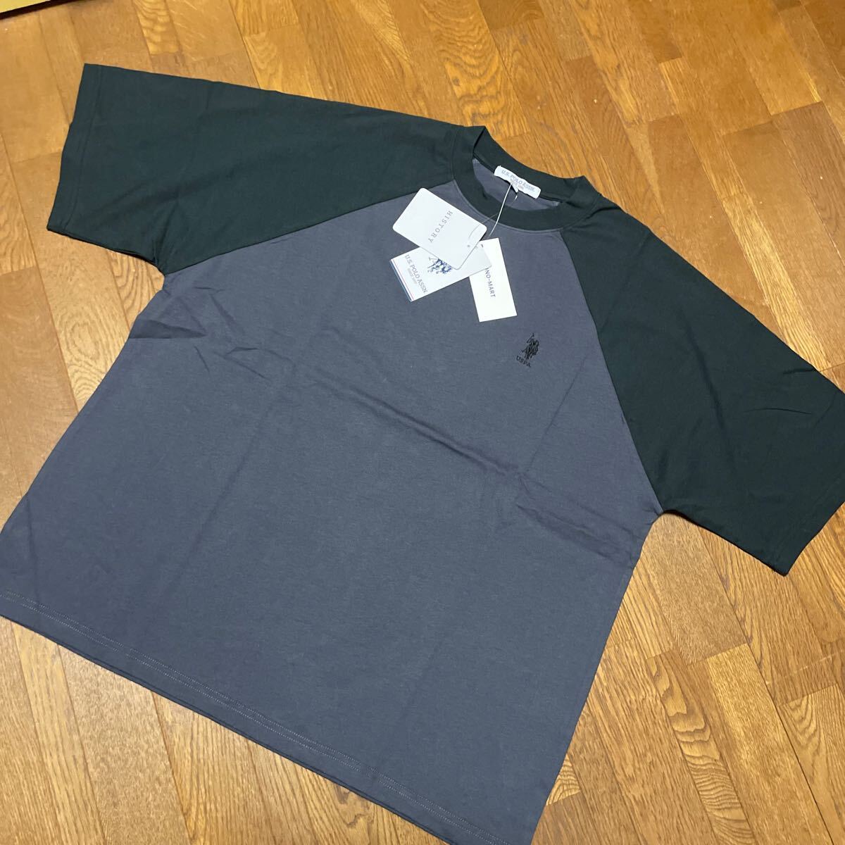 - 新品・未使用♪U.S. POLO ASSN♪ワンポイント刺繍 ラグラン配色オーバーサイズ半袖Tシャツ ♪Mサイズ♪グレー&ブラック♪