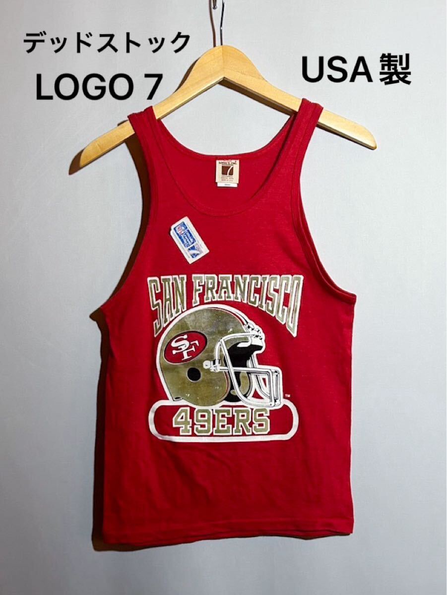 - デッドストック 80's 1980年代 LOGO7 ロゴセブン 49ERS ヴィンテージ タンクトップ Sサイズ 赤 NFL USA製 アメリカ 70's 未使用品 古着