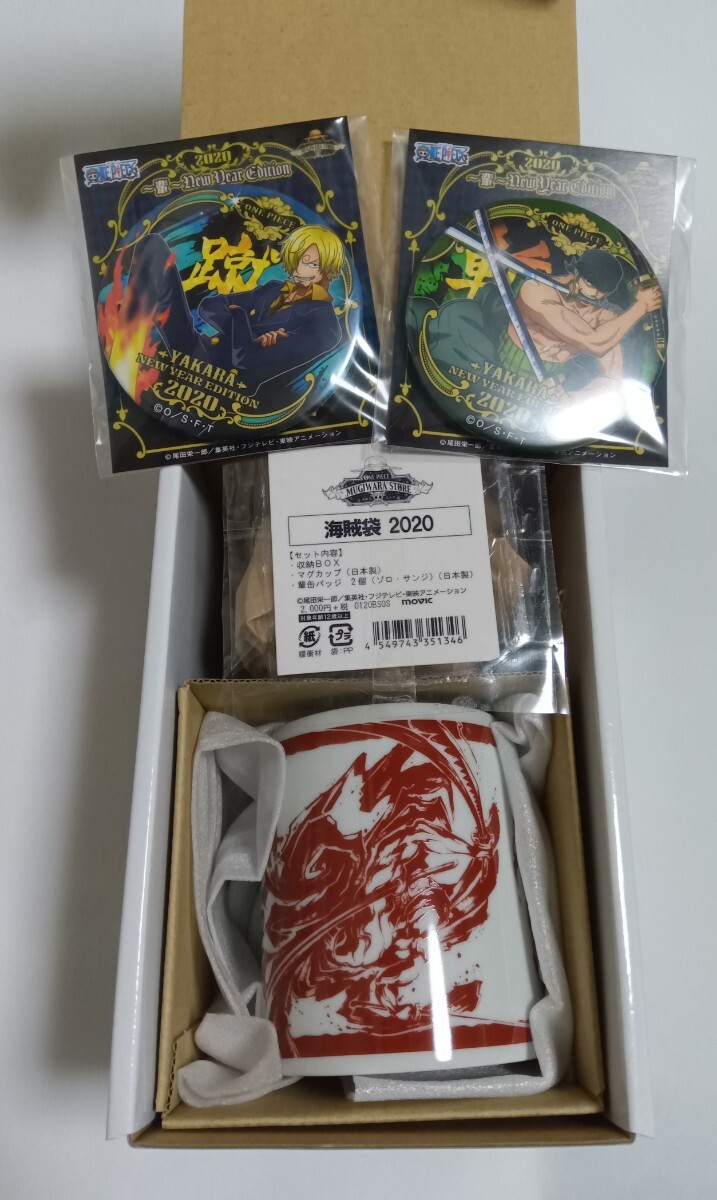 - ONEPIECE 麦わらストア 限定 海賊袋 2020 ワンピース 缶バッジ マグカップ ソロ・サンジ