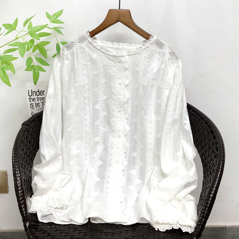 - 新品人気チュニック ワイシャツ 綿100% ゆったり 全刺柄 レース オシャレ フリーサイズ ナチュラル ホワイト