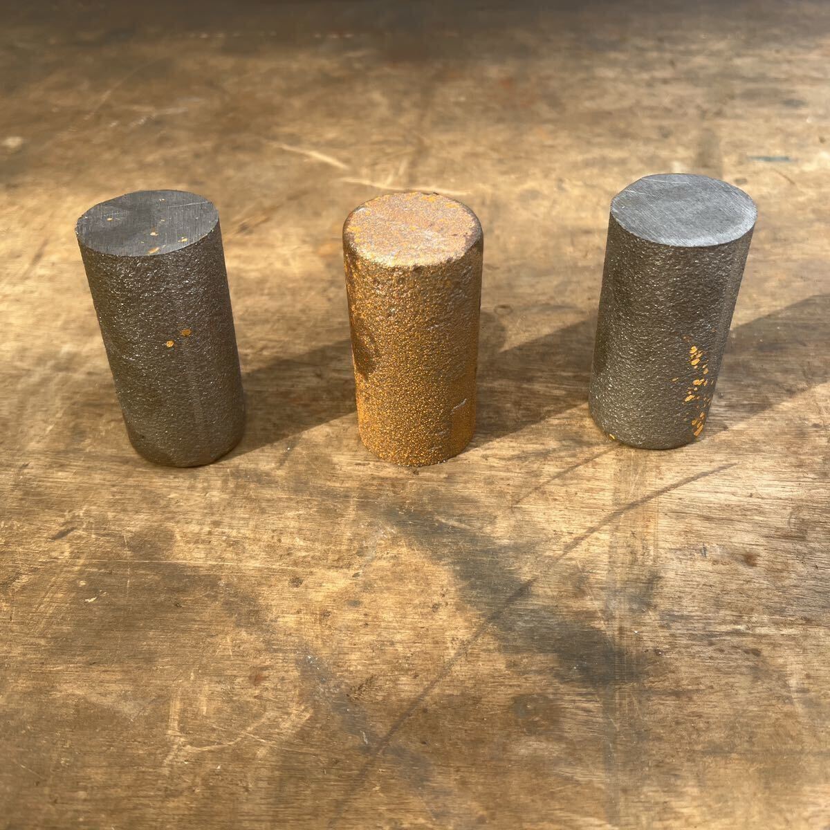 - 【定期】鉄 鉄丸棒 鉄円柱 鉄塊 端材 3個 ② 約φ42×h83㎜ 【在庫多数あり】