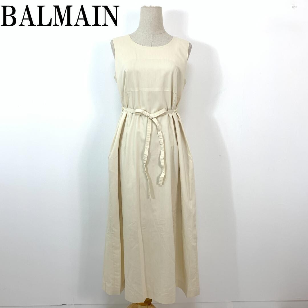 - LA6158 バルマン ノースリーブロングワンピース BALMAIN 紐ベルト付き 両サイドポケット カジュアルベージュ 38