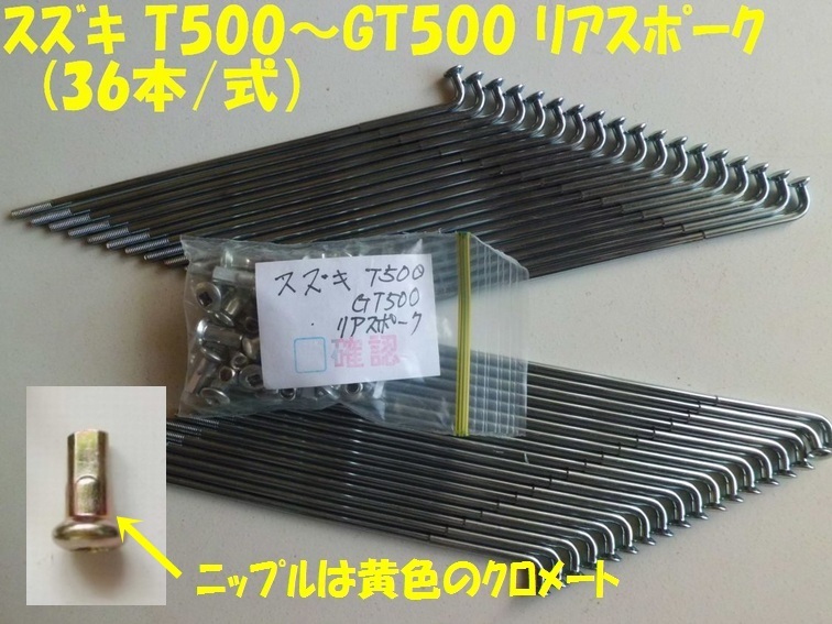 - スズキ T500 GT500 リアスポークセット(黄色ニップル)