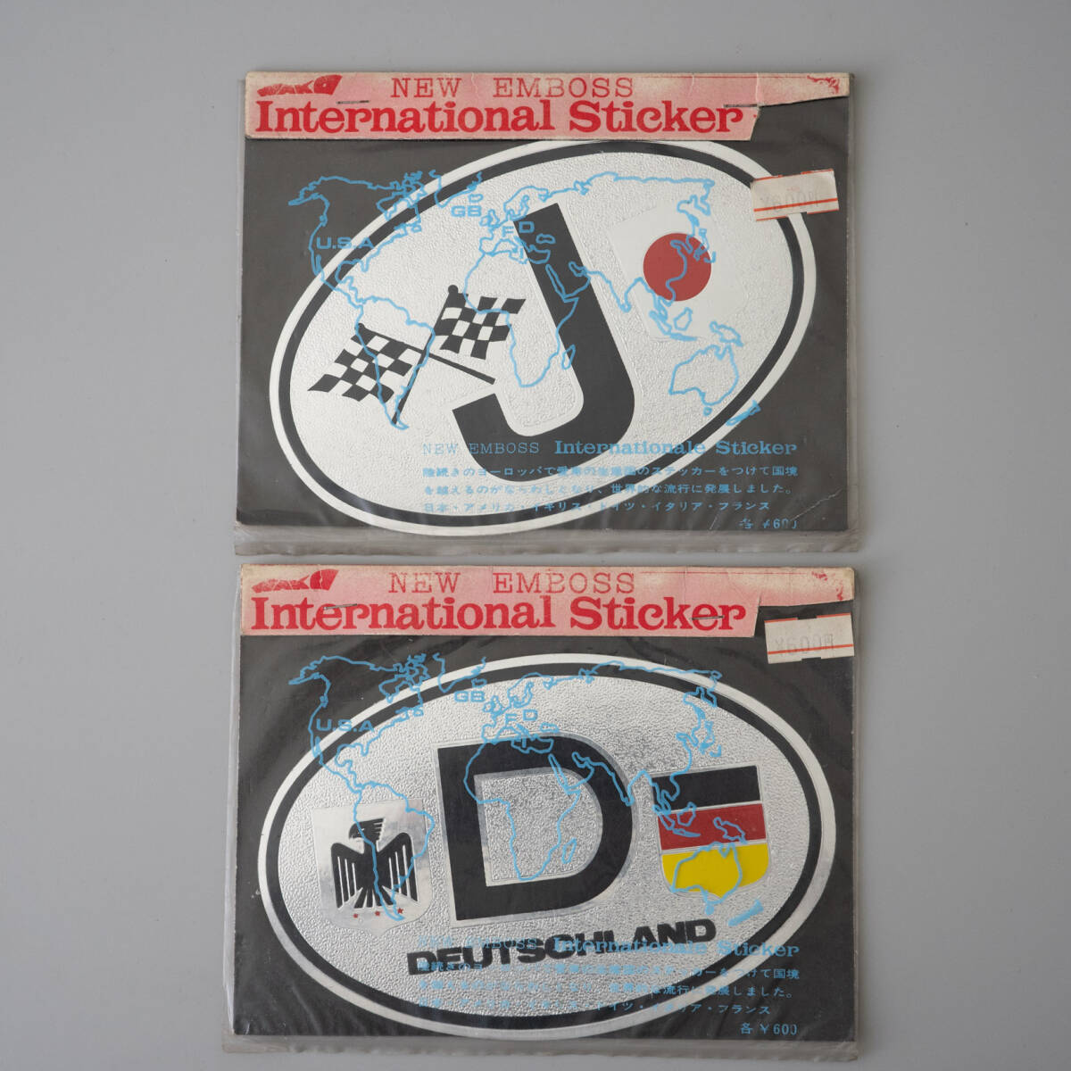 > 未使用品 当時物 レア エンボス加工 国際識別 2個 インターナショナル ステッカー ドイツ 日本 レトロ シール international sticker