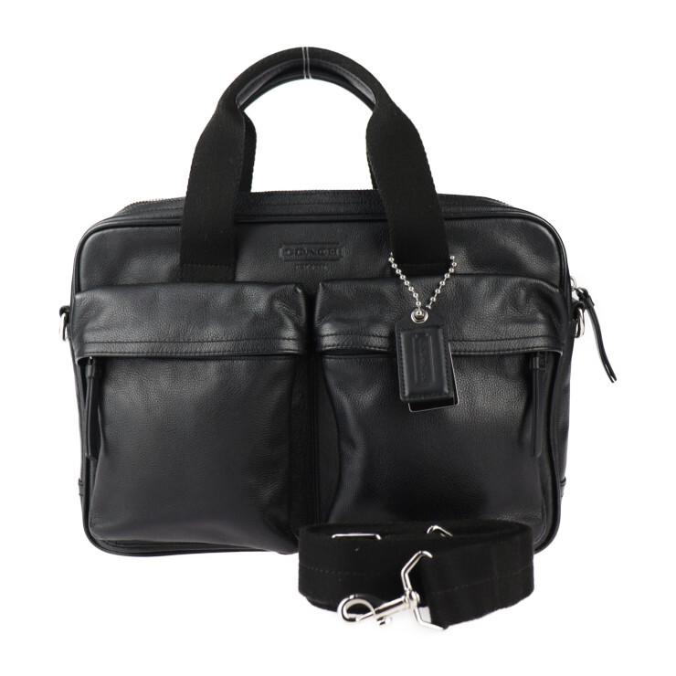 > 美品 コーチ トンプソン スリム コミューター X ビジネスバッグ 70859 レザー 黒 2WAY ショルダーバッ【本物保証】