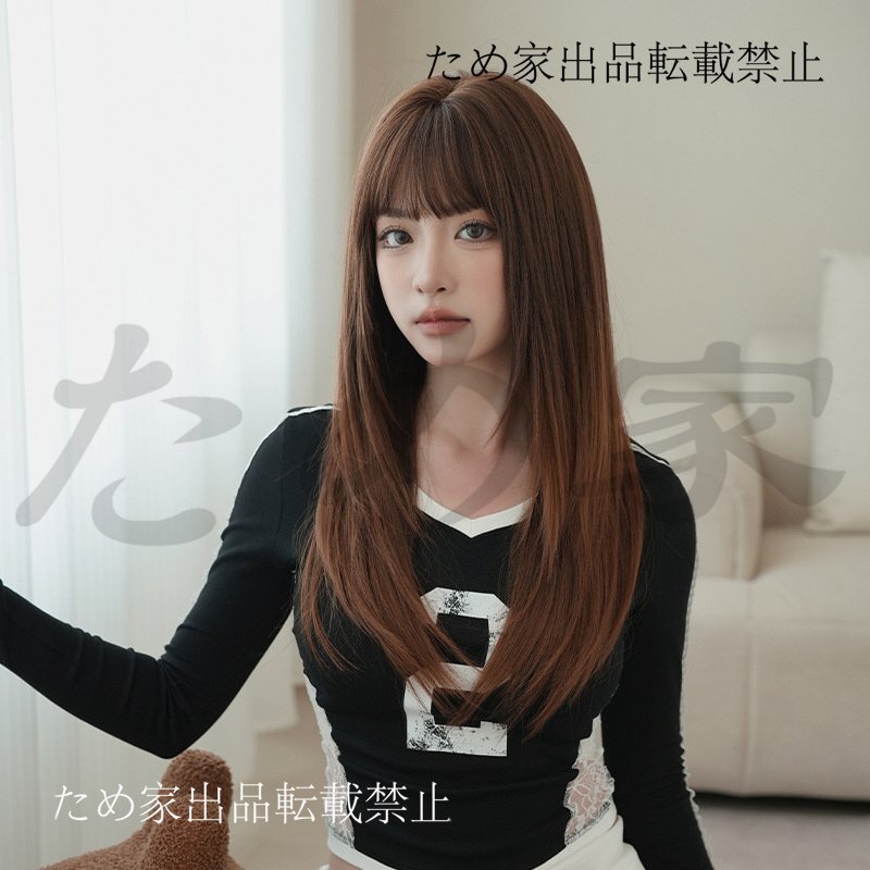 - 新品人毛 サンドベージュ系グラデロングウィッグ レイヤースタイル 自然なストレートヘア つむじ部分手植え 自然に見えますフルウィッグ