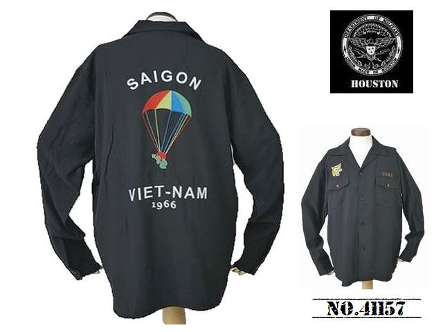 > 【送料無料 30%OFF 】HOUSTON ヒューストン 刺繍スーベニアシャツ 「 VIETNAM PARACHUTE 」柄 NO.41157 BLACK_XLサイズ