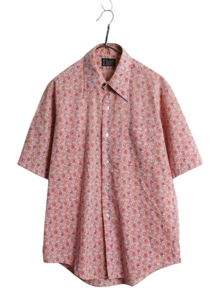 > 70s タウンクラフト 総柄 半袖 シャツ メンズ L / 古着 ヴィンテージ ペニーズ ボタニカル アロハ ハワイアン マルチカラー ポケット付き