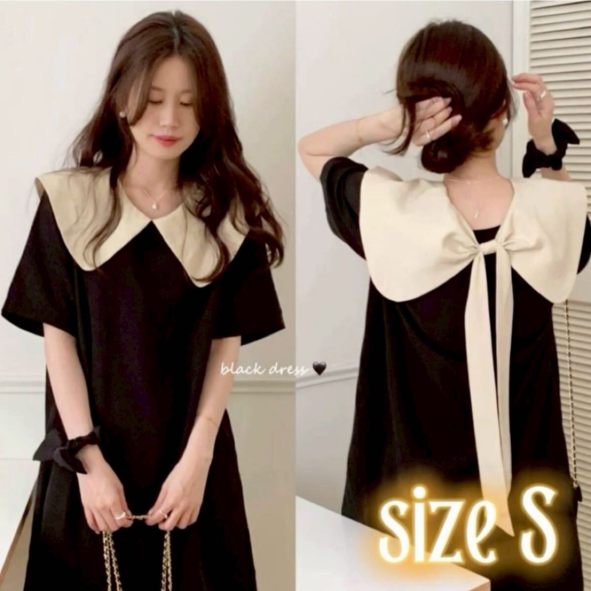 - ミニワンピース ビッグカラー ワンピース バックリボン ブラック ドレス S