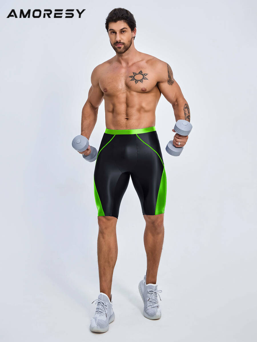 > AMORESY Spartacusシリーズ 膝丈 スポーツショーツ メンズ カジュアル フィットネス パンツ サイクリング 516 ブラック&ライムグリーン
