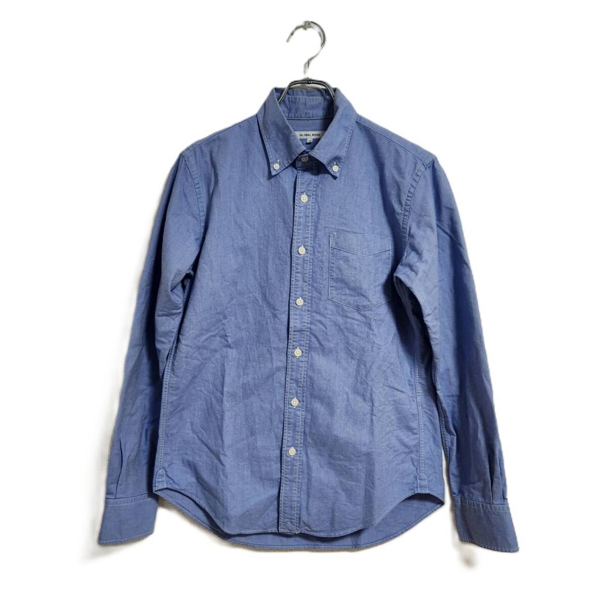 - グローバルワーク 長袖シャツ S ブルー ボタンダウン 通勤 通学 羽織り