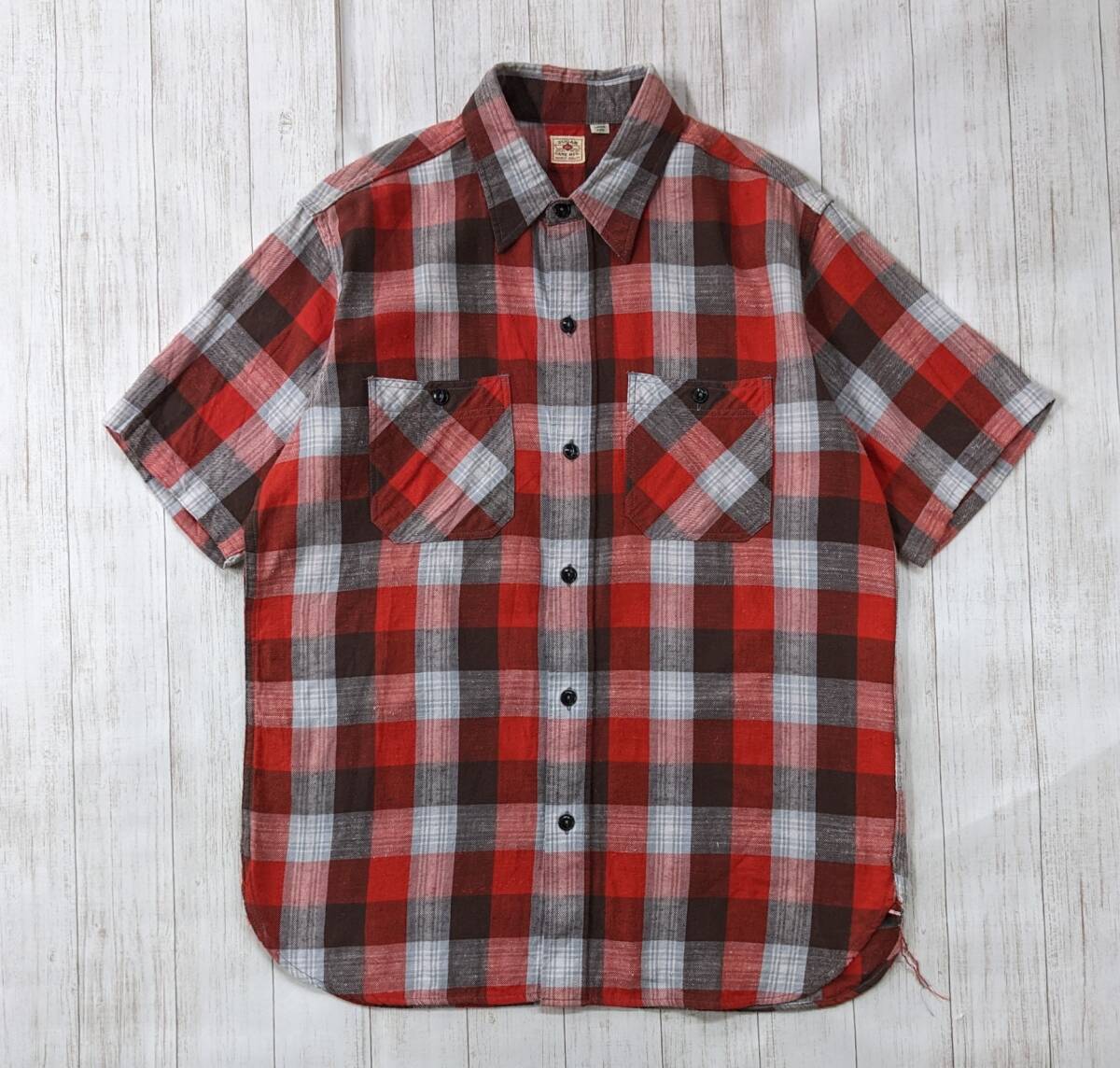 - SUGAR CANE/シュガーケーン/東洋エンタープライズ/ライトフランネル半袖チェックシャツ/SIZE L/空環仕上げ/ネップ加工/ビッグシルエット