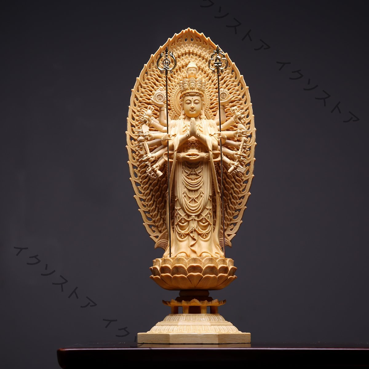 - 千手観音 純手作り 精密彫刻 木彫工芸品 仏像置物 コレクション お寺供養 檜木製