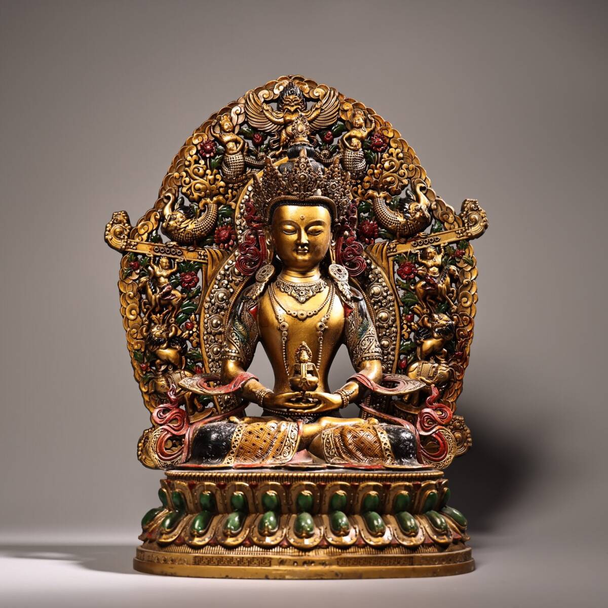 - ▽鴻▽ 銅製 描金 彩繪 長寿仏 仏教古美術 供養品 古賞物 中国古玩 中国古美術