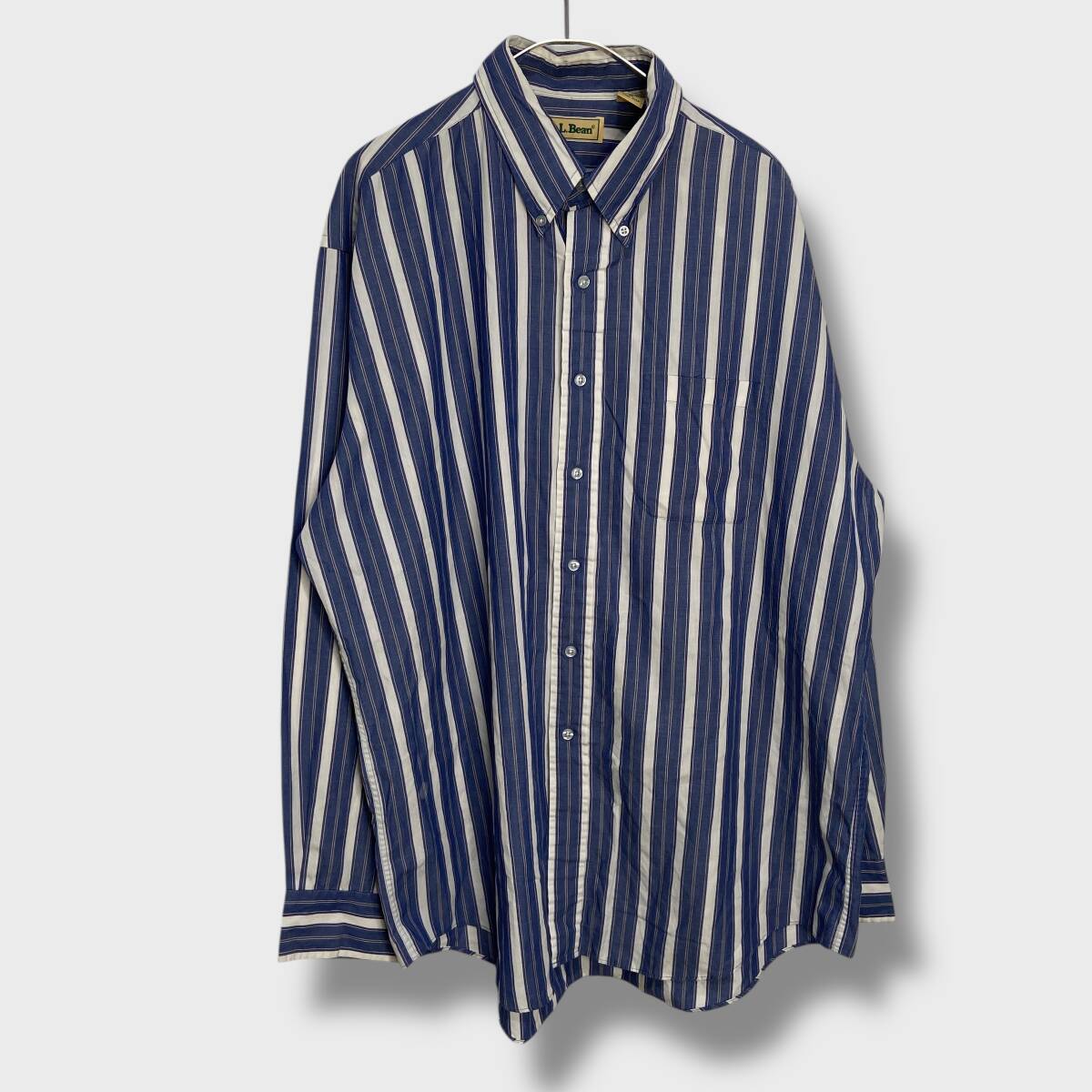 - 送料無料☆エルエルビーン☆ストライプ柄長袖シャツ☆ボタンダウンシャツ☆90s☆香港製☆ネイビー系☆XL☆E25M