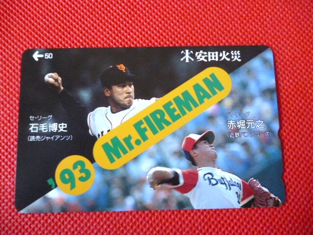 > テレホンカード テレカ 50度 安田火災 1993年 Mr. FIREMAN 読売ジャイアンツ 石毛博史 近鉄バファローズ 赤堀元之 未使用/112