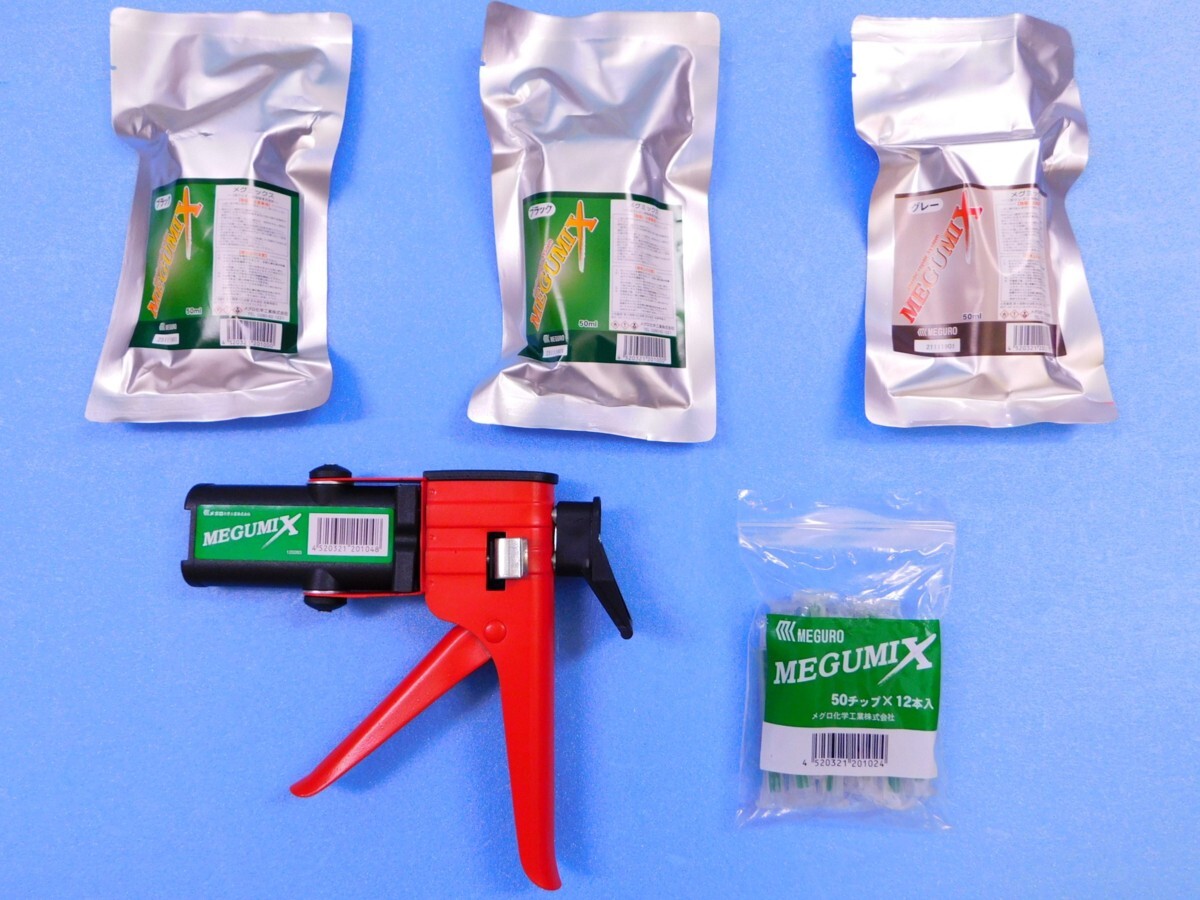 - 【メグミックス接着剤・MKキット】※《充填用ガン》《ブラック120281 ×2個》《グレー120286 ×1個》《チップ120280 ×12本》