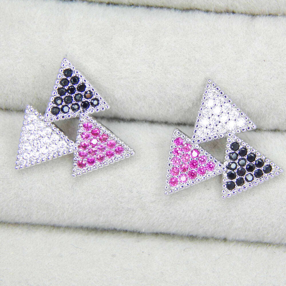 - 新品★3連トライアングル ジルコニア マルチカラーCZダイヤモンドピアス シルバー925 プラチナ仕上 レディースアクセサリー イヤリング化可