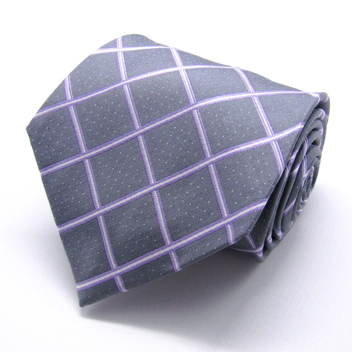 - ヒロココシノ ブランド ネクタイ シルク 格子柄 ドット柄 PO メンズ グレー HIROKO KOSHINO