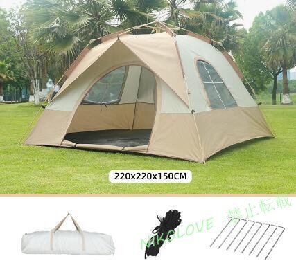 - 新品 テント ポップアップテント ワンタッチテント幅220cm 簡単セット 軽量 コンパクト アウトドア キャンプ 3-4人用 469 カーキ白