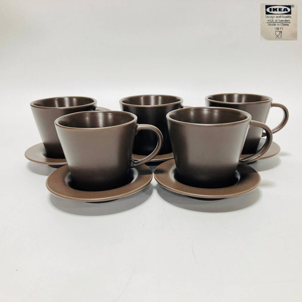 - 【61603C】IKEA イケア カップ&ソーサー 茶色 シンプル 5客セット 幅10.5㎝×奥行8.2㎝×高さ7㎝ 現状品 経年保管品